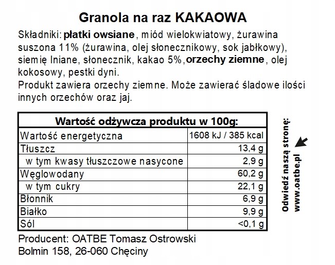 Nasz produkt to idealny, zdrowszy zamiennik płatków śniadaniowych. Najlepiej smakuje z mlekiem, napojem roślinnym lub jogurtem. Sprawdza się również jako samodzielna przekąska- dla całej rodziny!